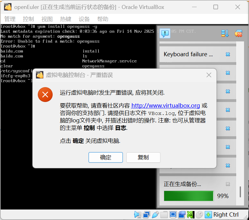 总之遇到了找不到对应包, 虚拟机没法拍快照, 包装上了没有创建对应用户, 对应用户找不到对应命令等一系列极其痛苦且网上搜不到解决方案的问题, 更新了 VirtualBox 和 openEuler 的版本, 把 VirtualBox 换成了 VMWare, 到最后还是几乎毫无进展, 一怒之下选择了实验三, 在 Gemini 帮助下一晚上搞定.