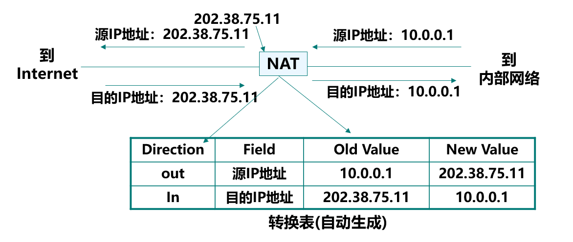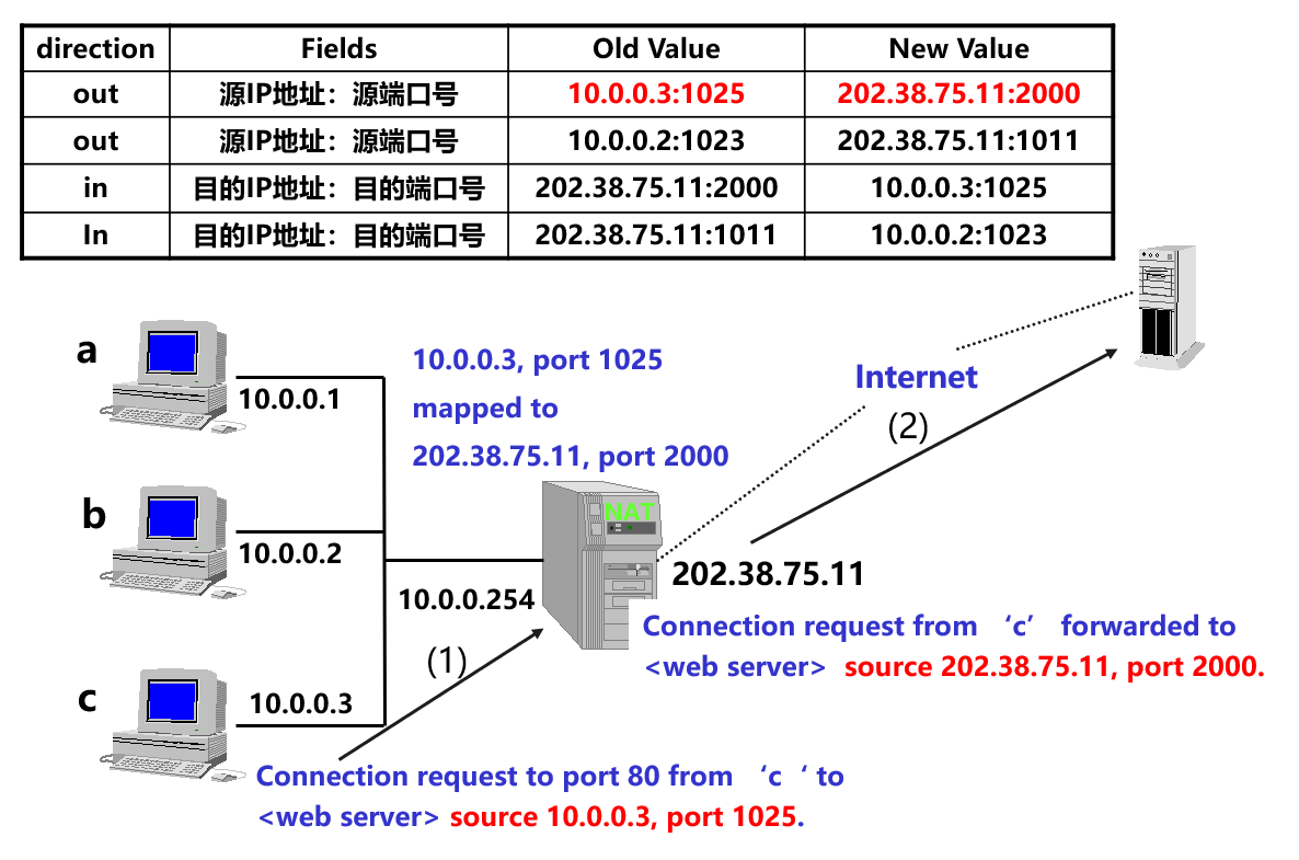 问题: 如果只使用 IP 地址信息, 在只有一个全局 IP 地址的情况下, 对于从 Internet 到内部网络上的分组, NAT 设备无法知道分组所对应的内部主机.