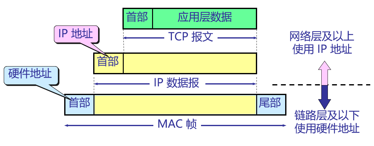 | 物理地址 (数据链路层地址) | 逻辑地址 (网络层地址) |