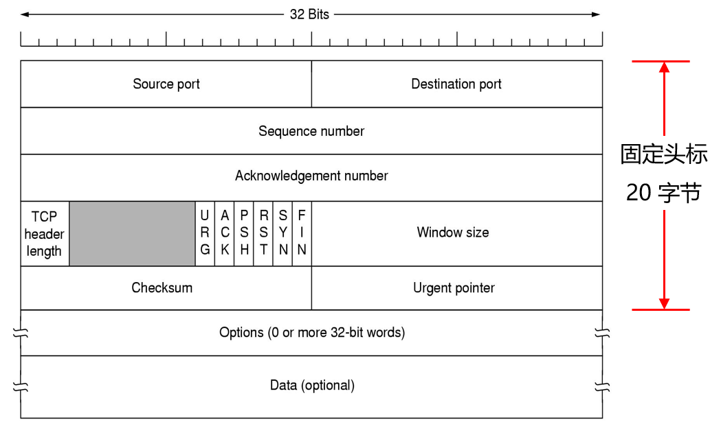 - 检验和 Checksum: 用来检验 TCP 头标和数据的完整性, 检验时, 要加上伪 IP 头标