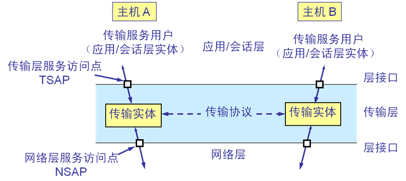 - 实现运行在不同主机上的进程之间的通信: 每个应用进程都至少与一个传输层地址 (端口) 相关联